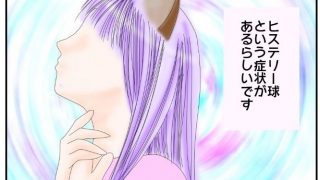 あかねこの日常ヒステリー球(咽喉頭異常感症) のどの違和感、圧迫感。喉が詰まる。喉がつっかえて呼吸が息苦しい感じ。それ、ストレスが原因でなるヒステリー球という症状かもしれません。ヒステリーな人がボールを投げる球技ではありません。サイトウアカネあかねこの日常
